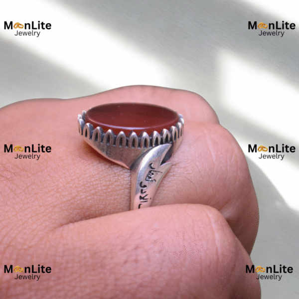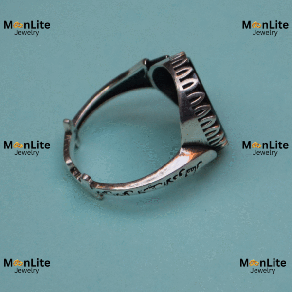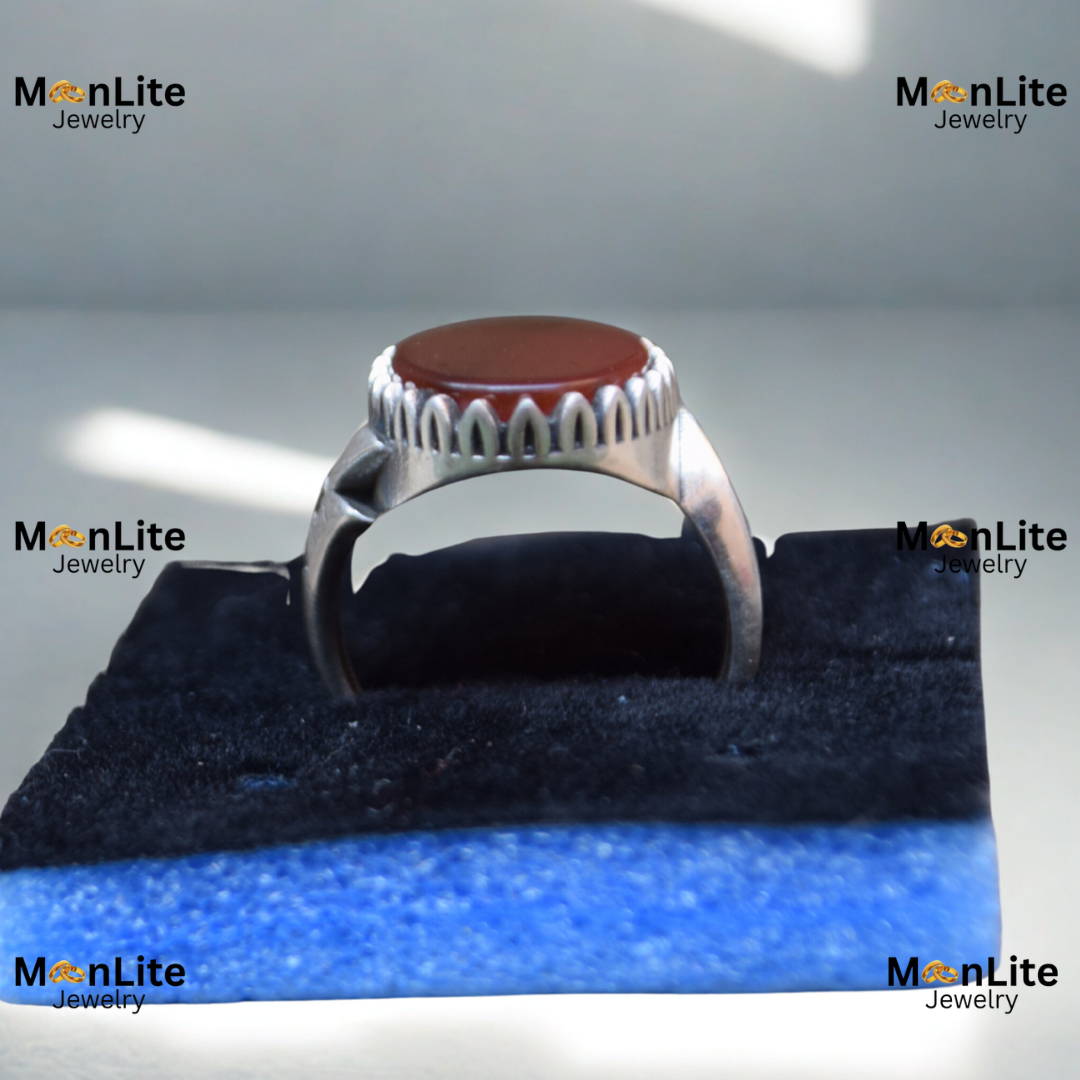 The side band showcases a handcrafted, rugged-style structure, adding character and personality to the ring. The crown-like frame around the stone enhances the vintage look while keeping the design masculine and strong.
