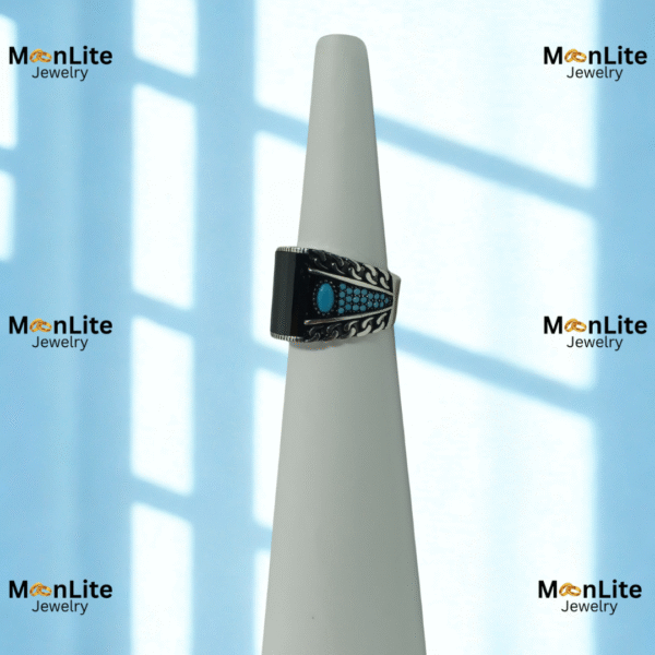 The ring features a blue turquoise-style stone that gives it a bold and stylish look.